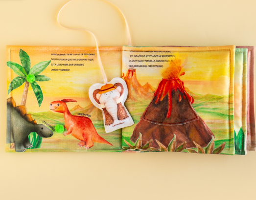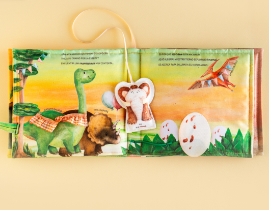 Un libro que nos habla sobre crecer y sobre el amor, sobre la importancia de aventurarse solitos, sabiendo que en casa siempre nos esperan. En un mundo de dinos, con sus adorables personajes y colores propios del posible paisaje pre-histórico. Se entrelazan períodos para hacer el libro más divertido y atractivo incorporando a un humano cavernicola muy simpático. Diseñado y escrito por Ludmila Carman Chiesa e ilustrado por Marilyn Rivero, este libro es más que un juguete: es una puerta de entrada al aprendizaje sobre el mundo pre-histórico y el amor de familia, que trasciende todo tipo de actores.