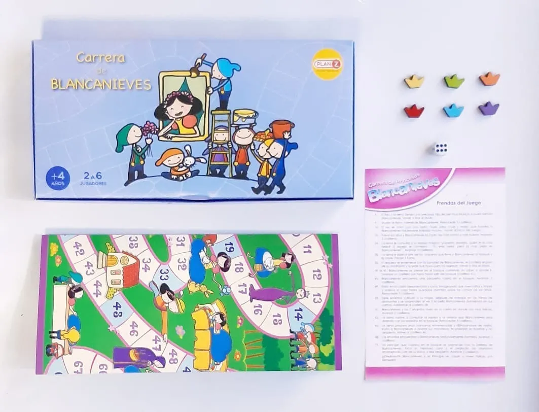 ¡Divertido y colorido recorrido para conocer la historia de BlancaNieves! Los juegos de recorrido enseñan a respetar las normas, mejoran la capacidad de analisis, mejoran e impulsan la cooperación y desarrollan la memoria.