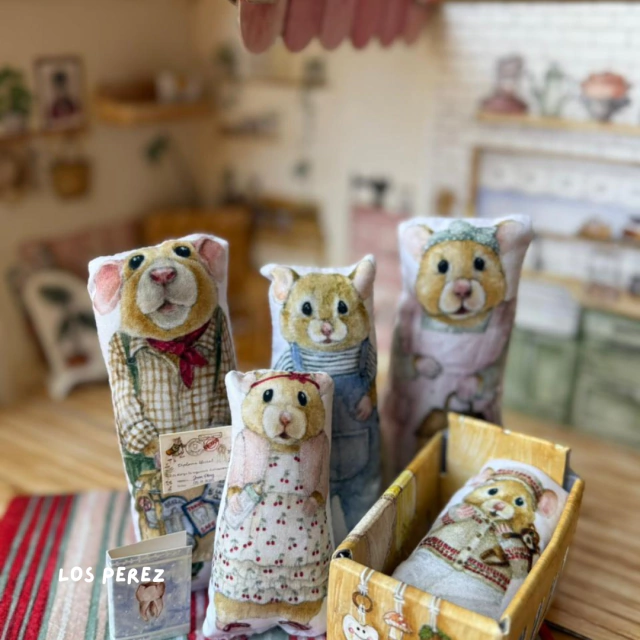 - 5 ratoncitos de tela ilustrados