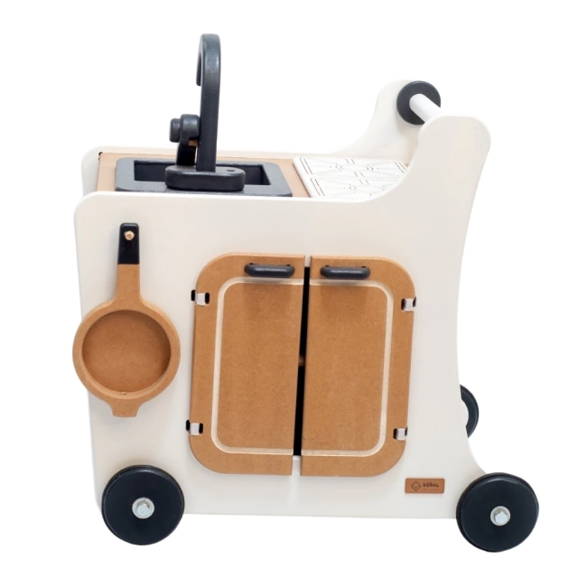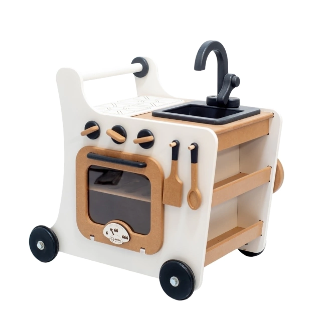 Con la cocina andador quisimos revolucionar el mundo del juego, convirtiendo un típico andador en una cocina móvil que lleva la diversion a donde vayas. Posee bacha, hornallas, pizarrón y un práctico lugar de guardado, tus pequeños chefs tendrán todo lo que necesitan para cocinar sus mejores recetas.