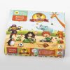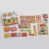 CONTENIDO: 42 tarjetas de animales / 90 tarjetas de letras / 32 tarjetas de personajes / 28 fichas de dominó / 18 dibujos para colorear