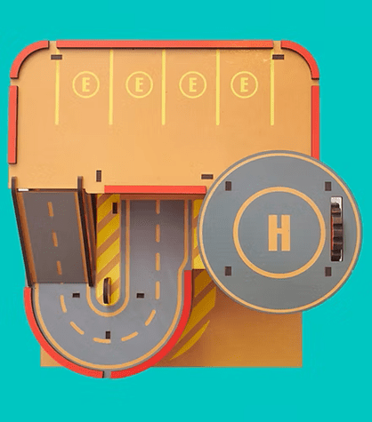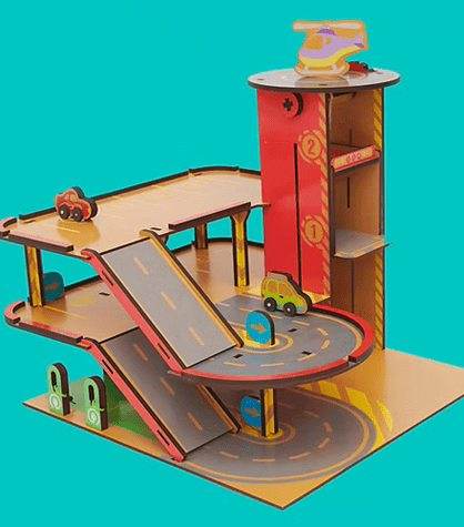 Divertite armando y jugando con esta super estación. Incluye dos autitos de madera y un helicóptero.