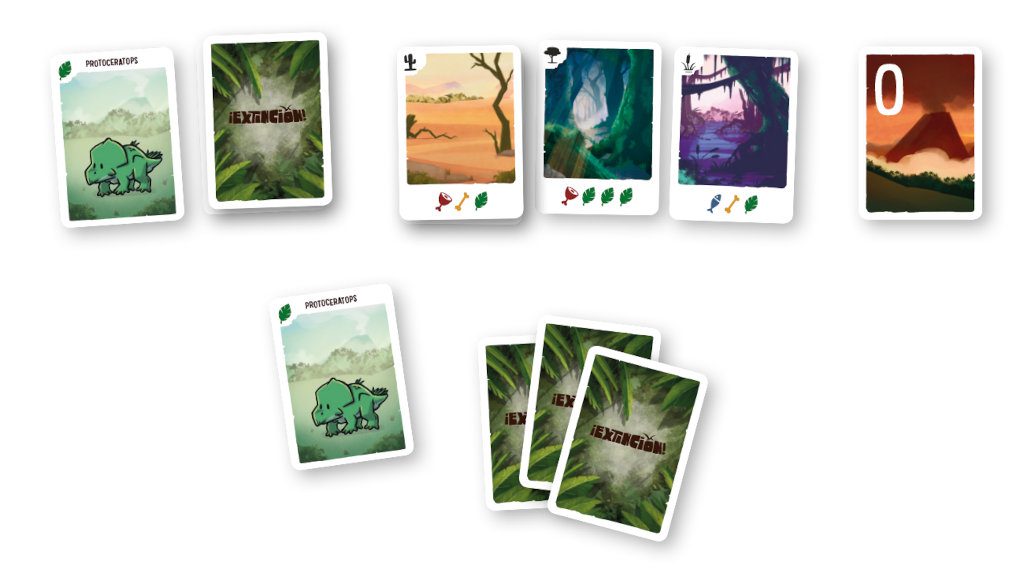 1 carta en blanco para que puedas dibujar tu dinosaurio favorito e incluirlo en tus partidas. También puedes inventarte nuevas habilidades para este.