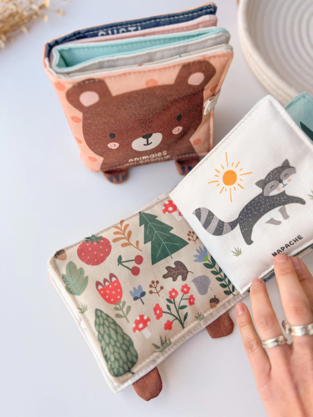 Libro de tela blando con ilustraciones diseñadas para acercar a los más chiquitos al universo de los animales y elementos de la naturaleza. Sus diseños son exclusivos. Contiene ruido papel en todas sus páginas y relleno de guata en su interior para estimular el tacto además de los colores y formas que ofrecen las ilustraciones. Ideal para bebés de 3 a 24 meses.
