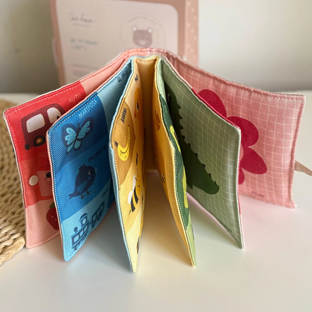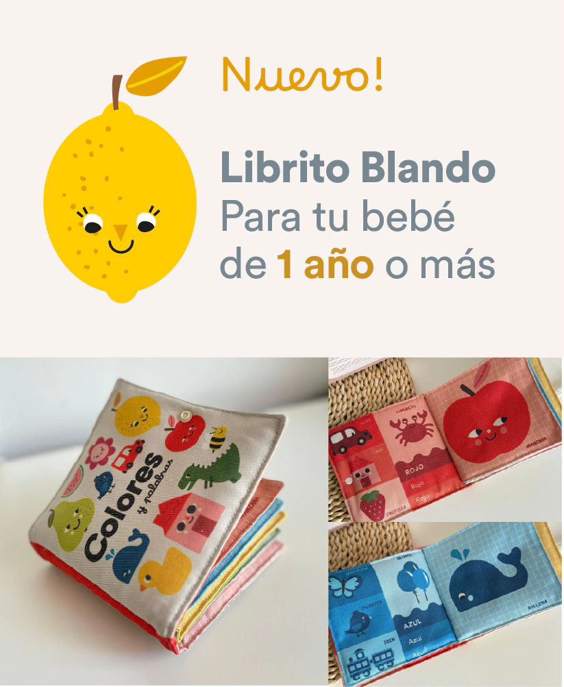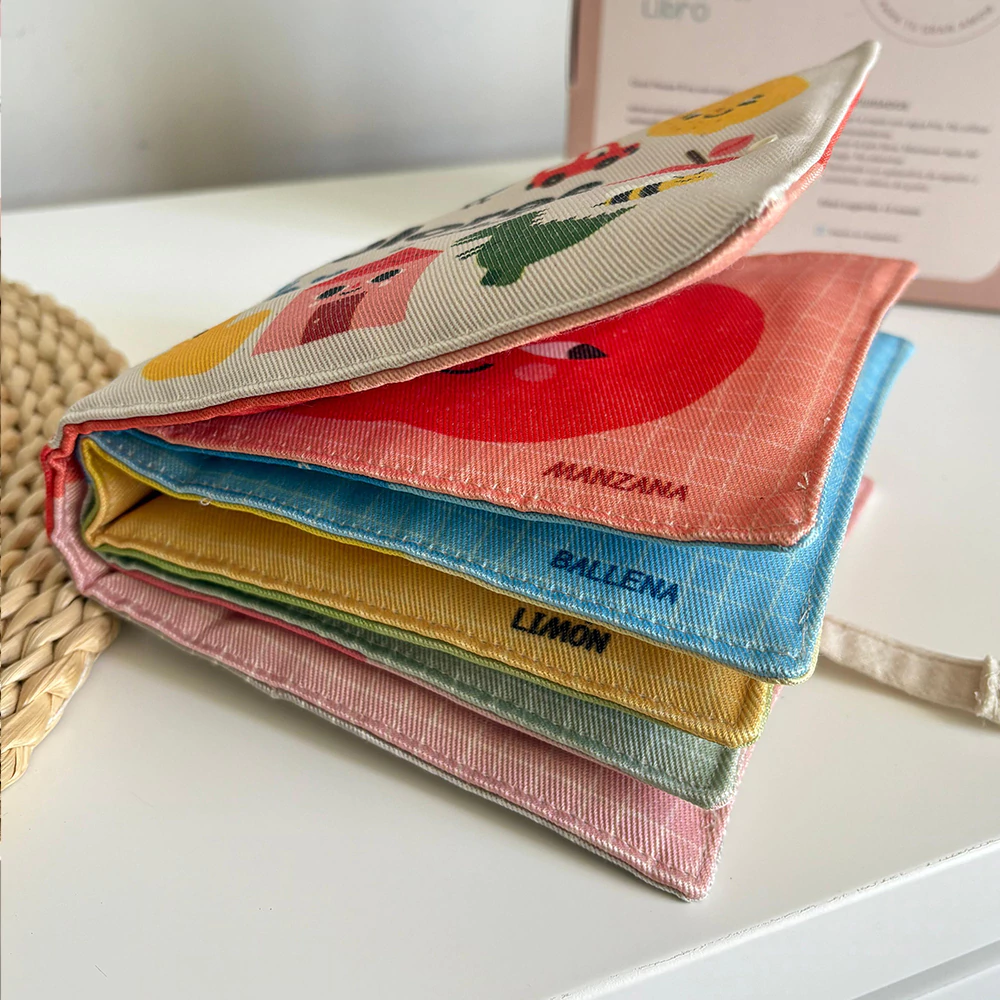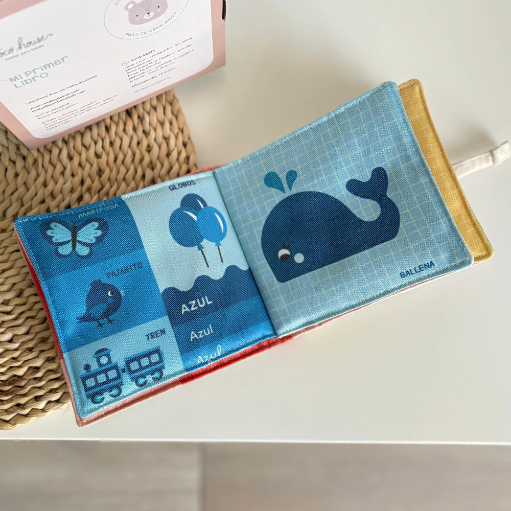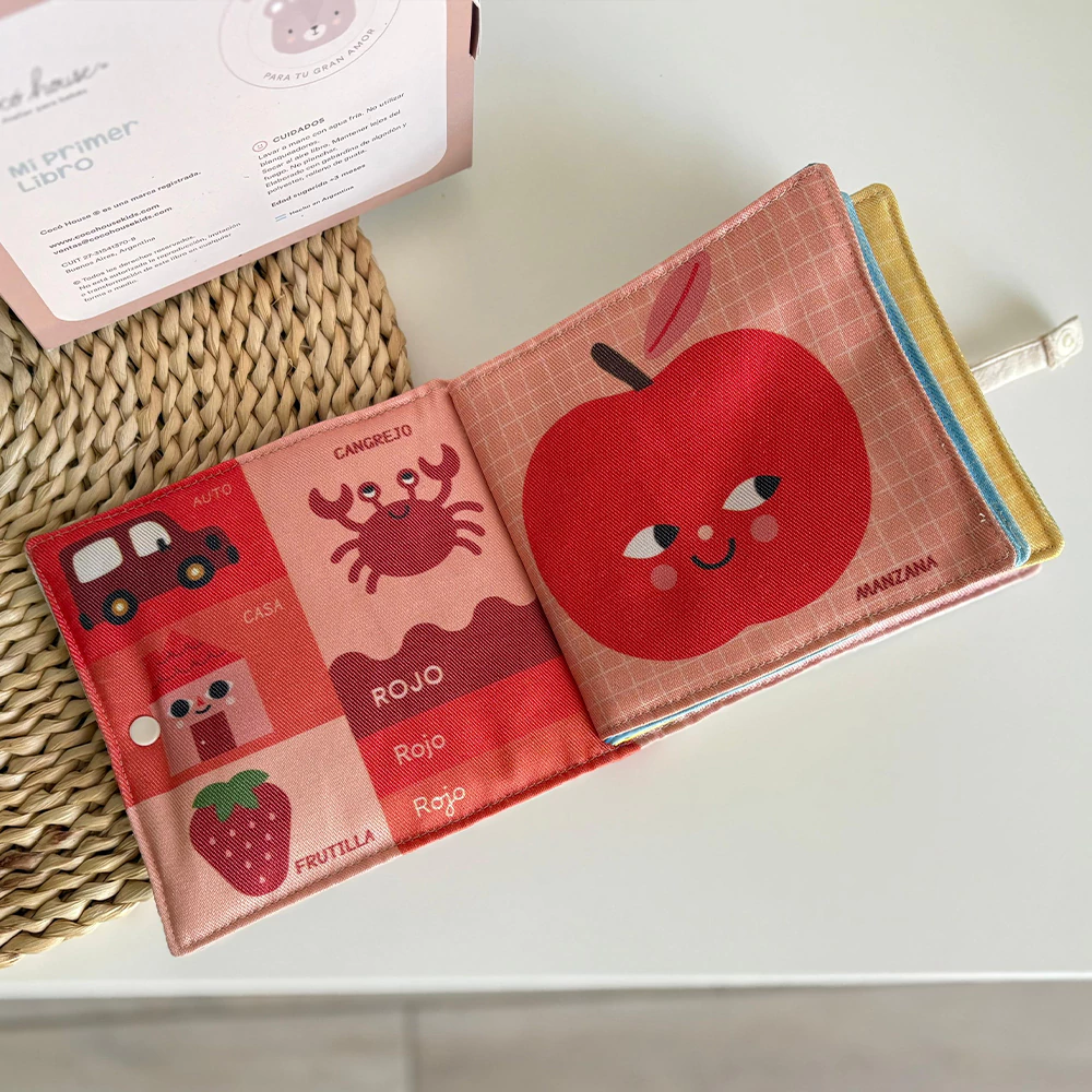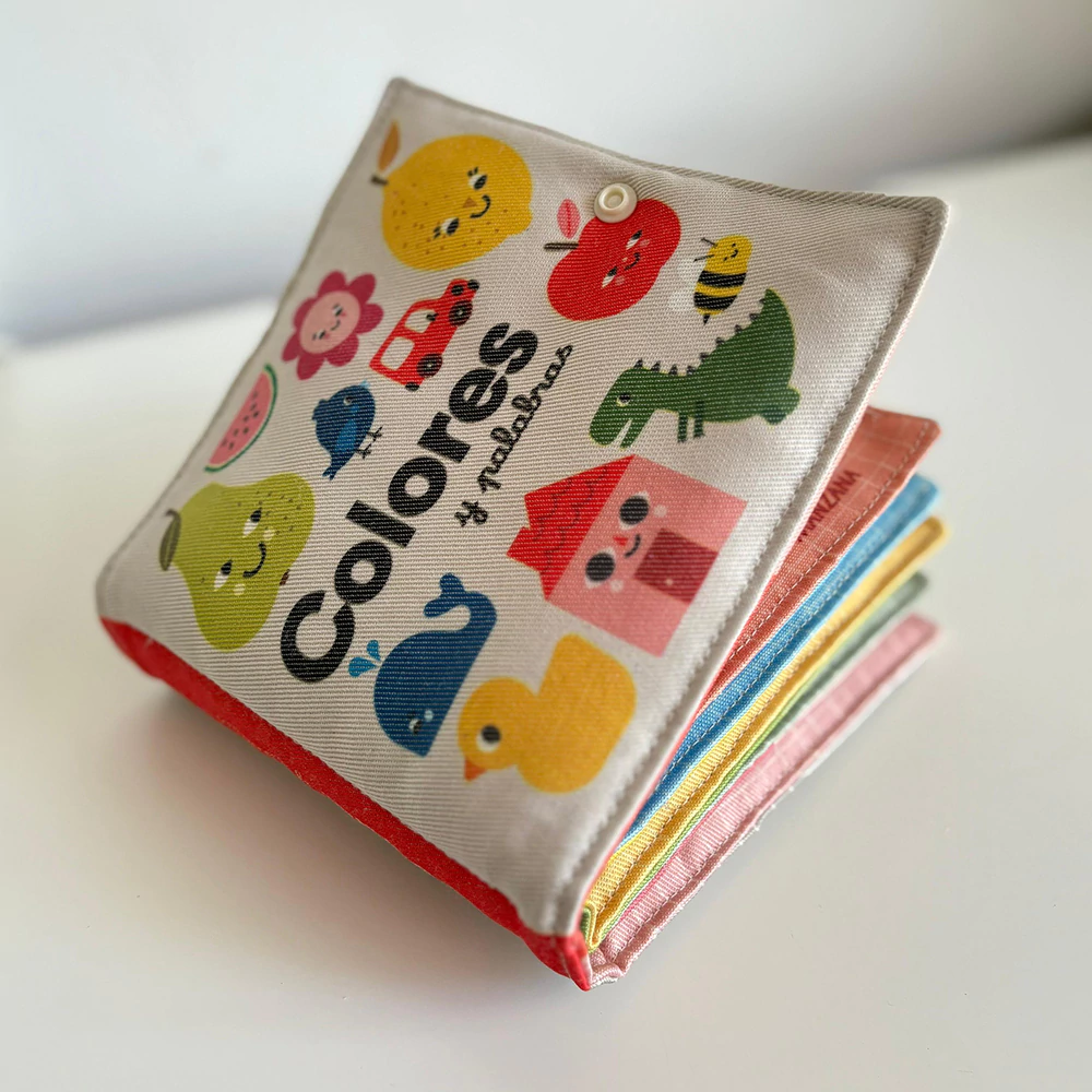Libro de tela blando con ilustraciones llamativas y diseñadas para acercar a los más chiquitos a nombrar palabras y reconocer colores. Cada doble página trabaja con 1 color, siendo visualmente muy atractivo para el bebé.