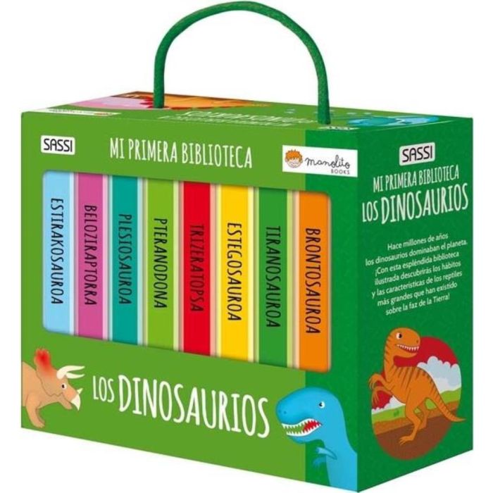 Ocho resistentes libritos te enseñarán a reconocer al Tiranosaurio, al Brontosaurio, al Estegosaurio, al Tricerátops, al Plesiosaurio, al Pteranodon, al Estiracosaurio y al Velociraptor!