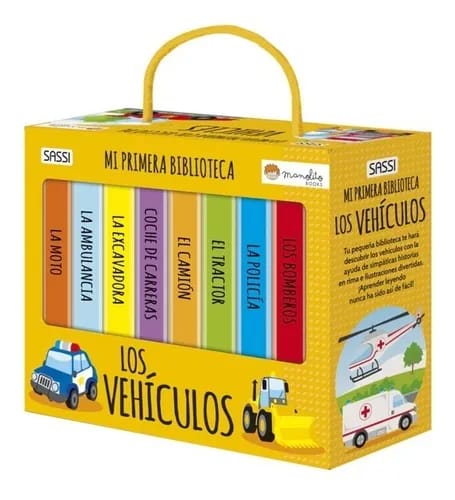 Tu pequeña biblioteca te hará descubrir los vehículos con la ayuda de simpáticas historias en rima e ilustraciones divertidas. ¡Aprende leyendo!