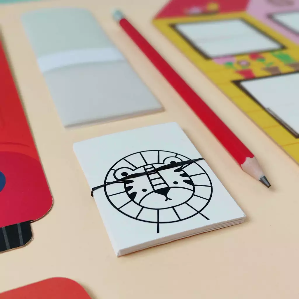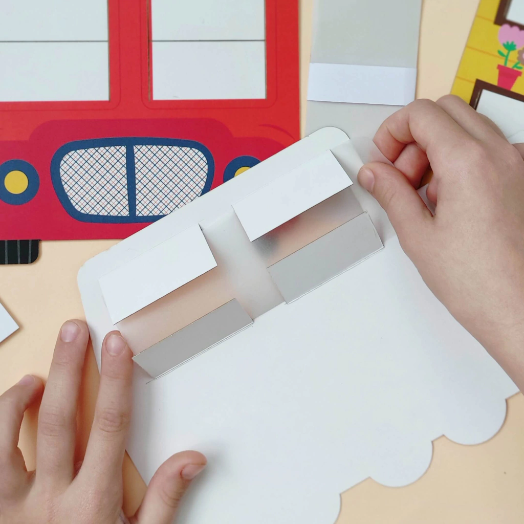 de calco. A continuación, dala vuelta, y en cada ventana insertá una tarjetita por debajo del papel de calco. ¡Y listo para dibujar! Luego podés colorear tus dibujitos como más te guste.