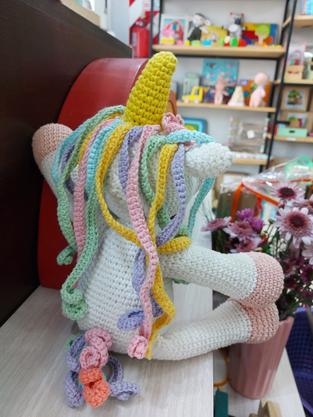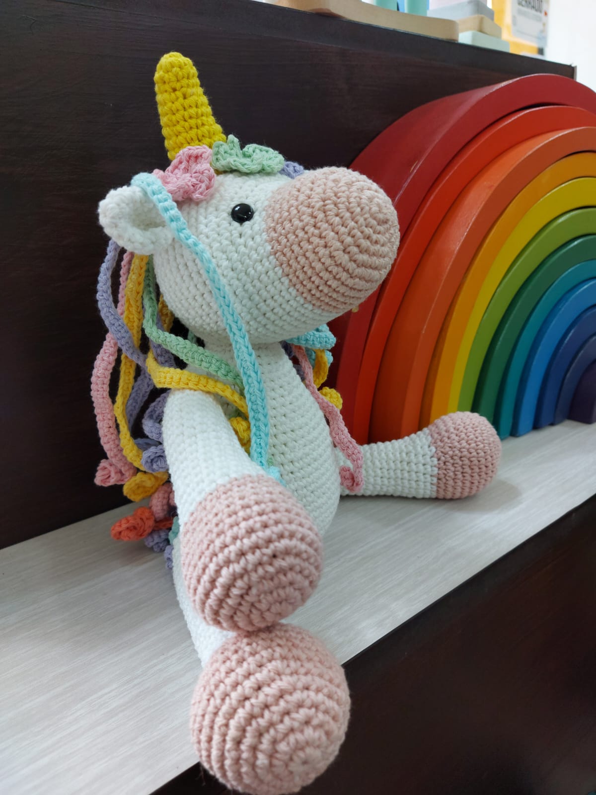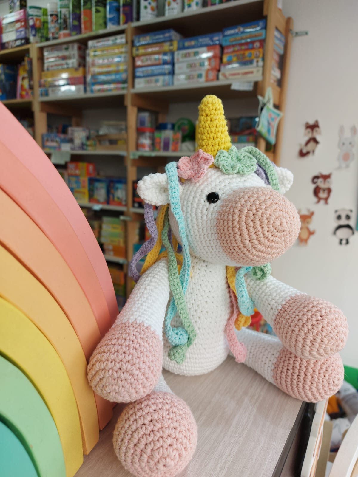 Hecho 100% con hilo de algodón, relleno de vellón siliconado, con ojitos de seguridad.